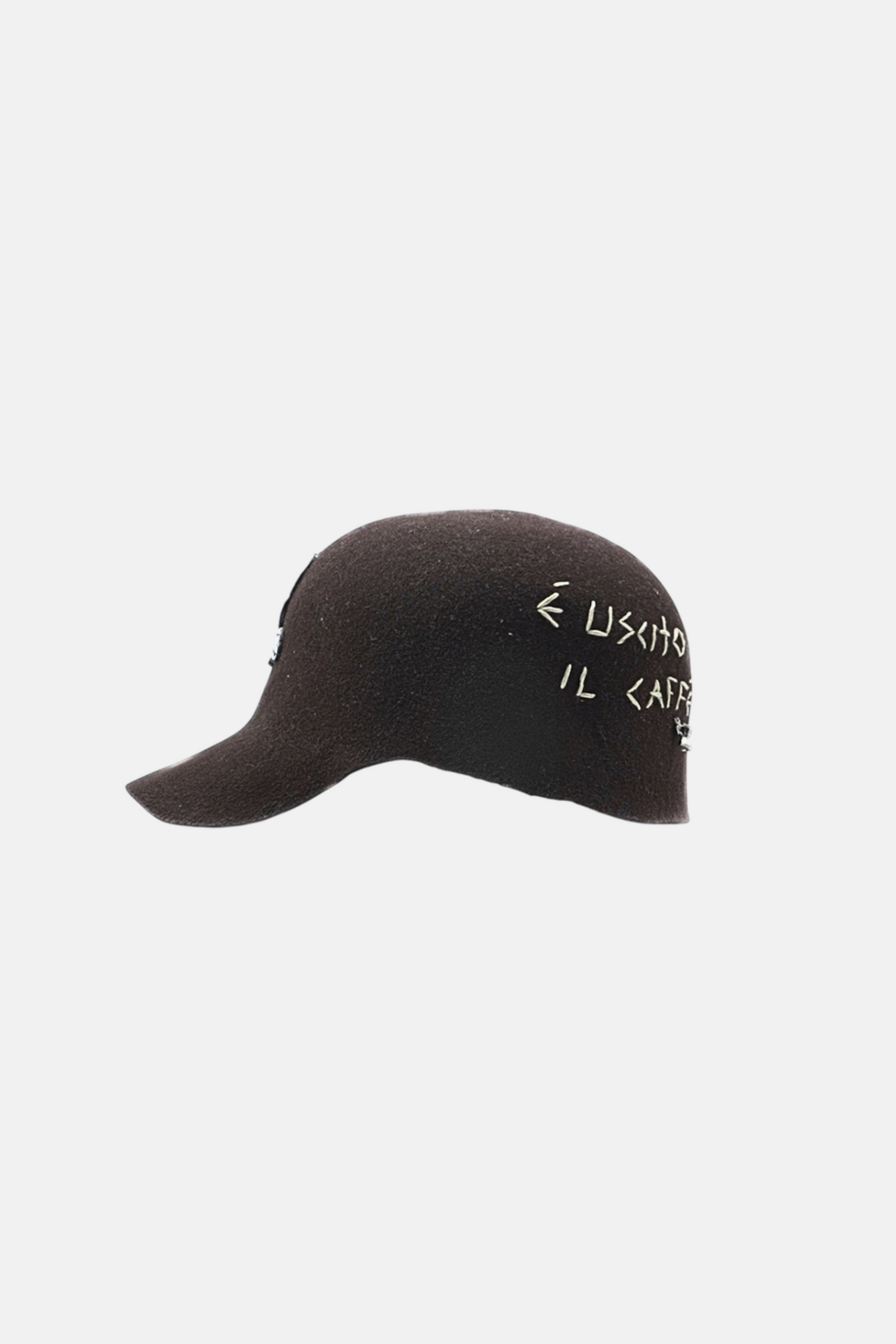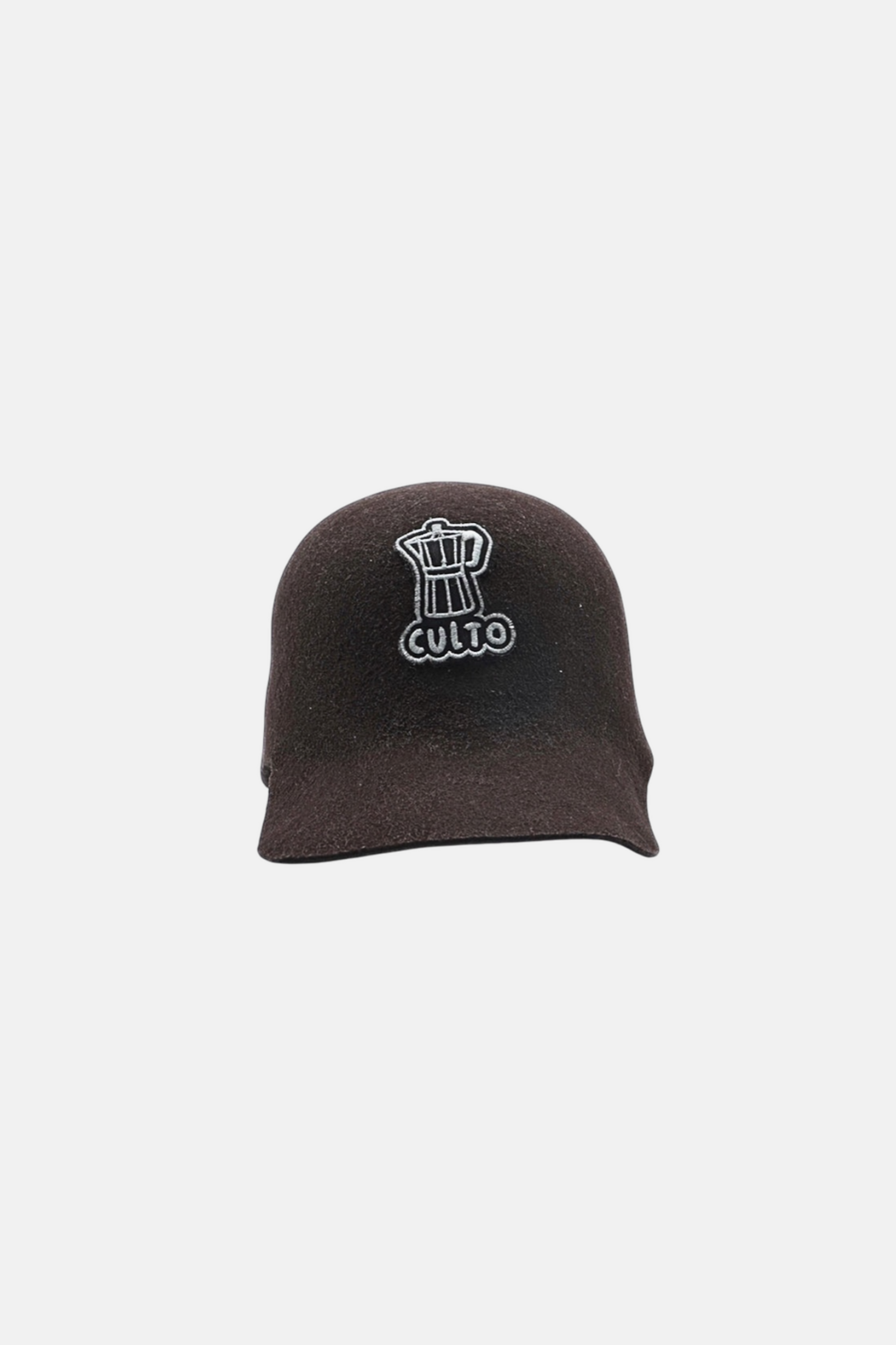 MOKI dá vita ad un berretto modello baseball cap completamente in puro feltro Premium di coniglio. Nato dalla collaborazione con il brand di berretti napoletano Comunik-hat, il berretto in feltro CULTO é l’omonima versione del cult di Comunik-hat con il tocco unico MOKI. Realizzato interamente a mano con una patch della Moka cucita al centro della corona, frase cucita a mano lateralmente e tesa del berretto a 7cm curvata.