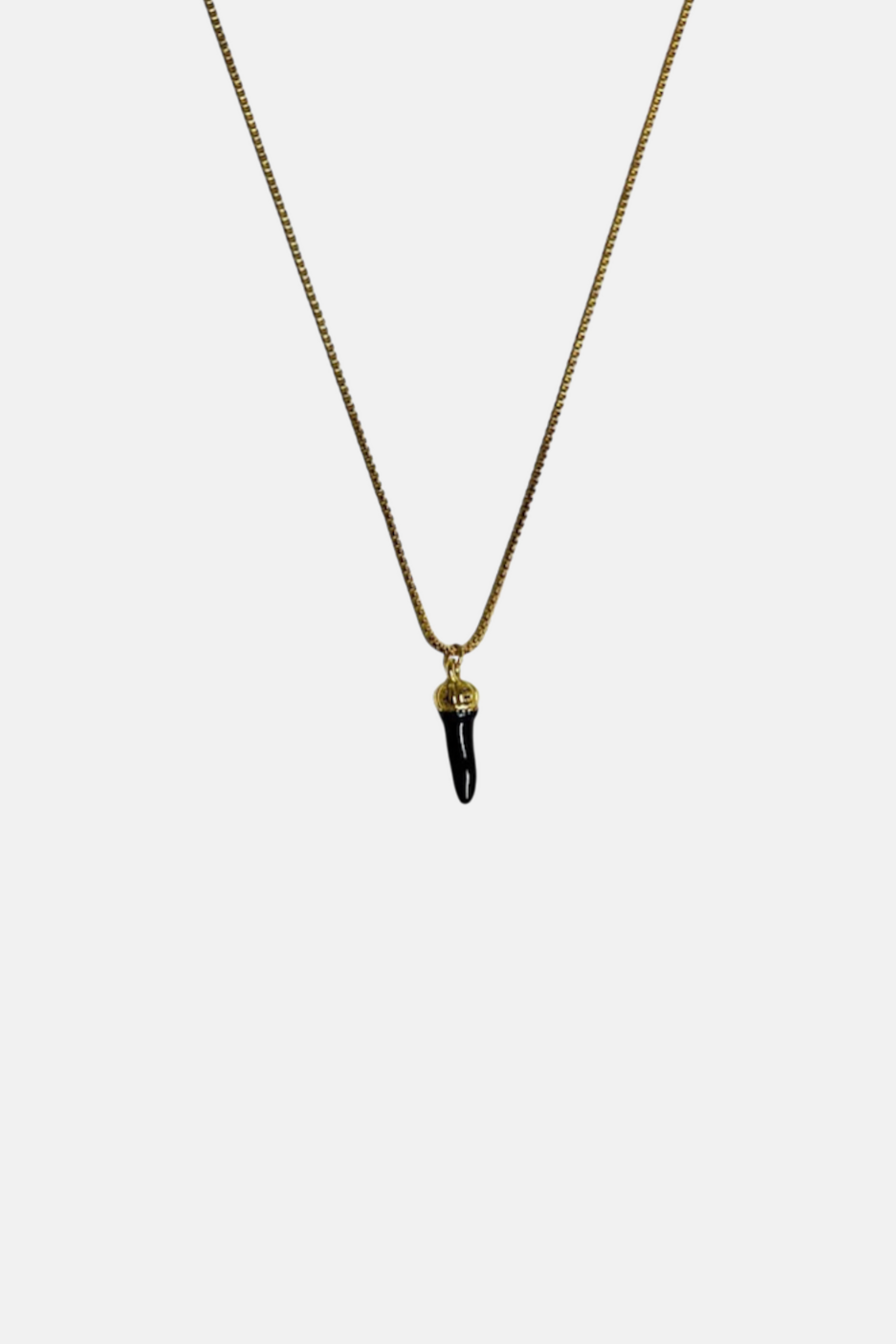 E' nata così la nostra O' CURNICIELL' BLACK&GOLD, realizzata a mano in Acciaio 316L con maglia quadrata placcata in Oro 18K e pendente Corno Nero.