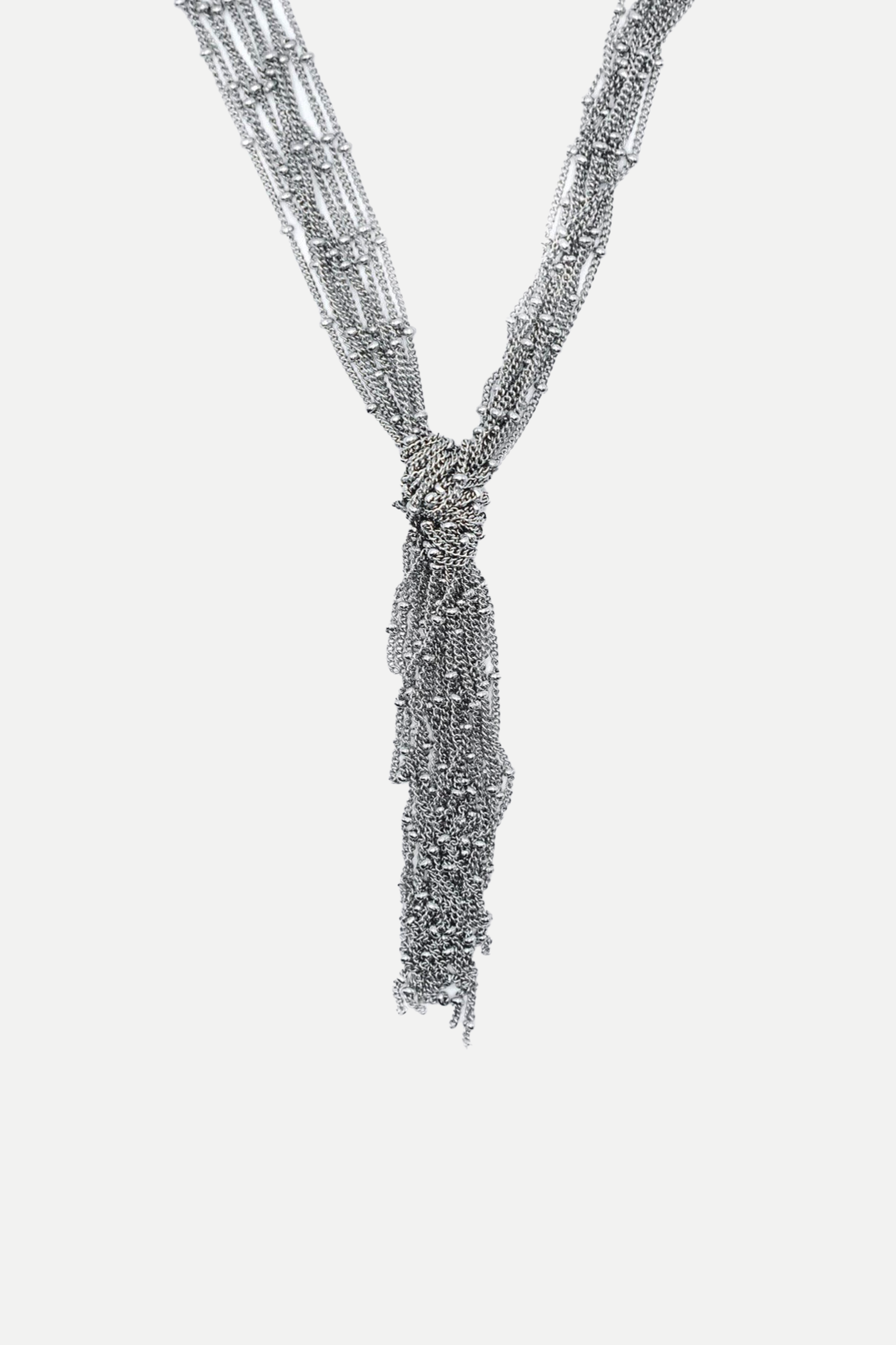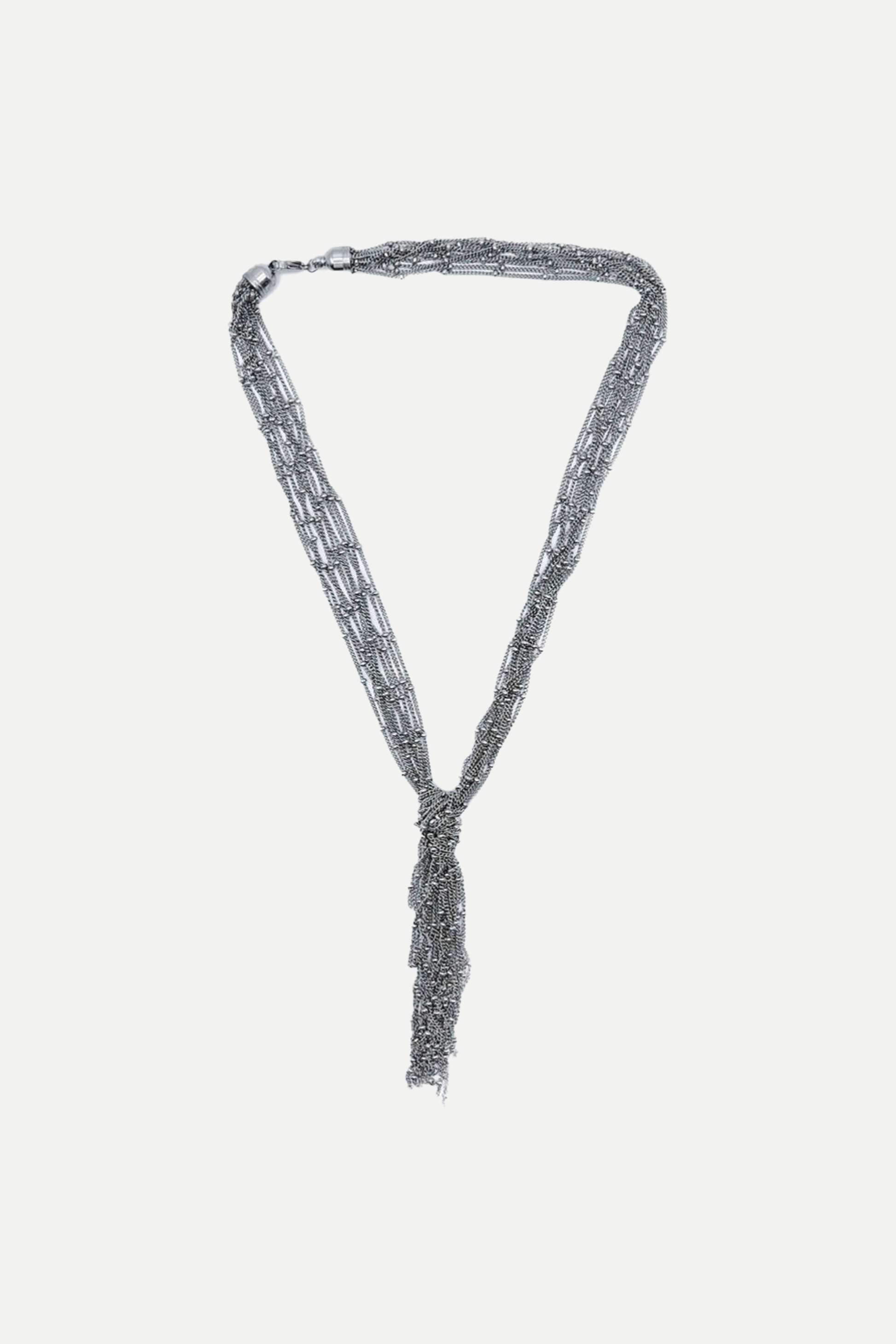 Dalla nuova collezione CULT, una collana che grida personalità ed unicità. Realizzata a mano con 20 maglie di Acciaio 316L in stile cubana con mini-sfere e nodo centrale con abbottonatura semi-laterale.