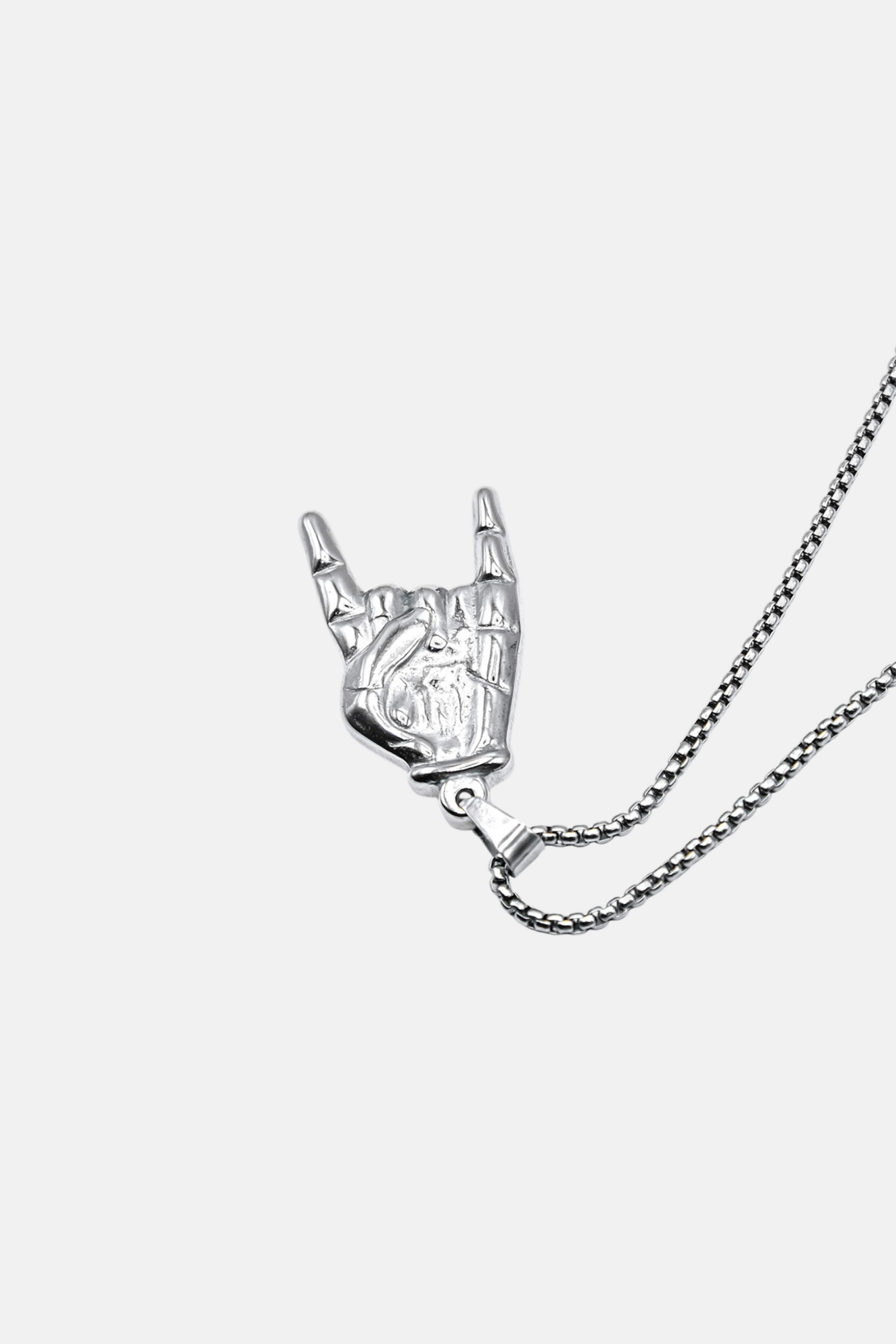 Ispirata al simbolo Rock per antonomasia, ‘Icon’ é una collana artigianale in Acciaio 316L (inossidabile, anallergico e waterproof) dal design unico, con maglia a serpente e pendente stilizzato.