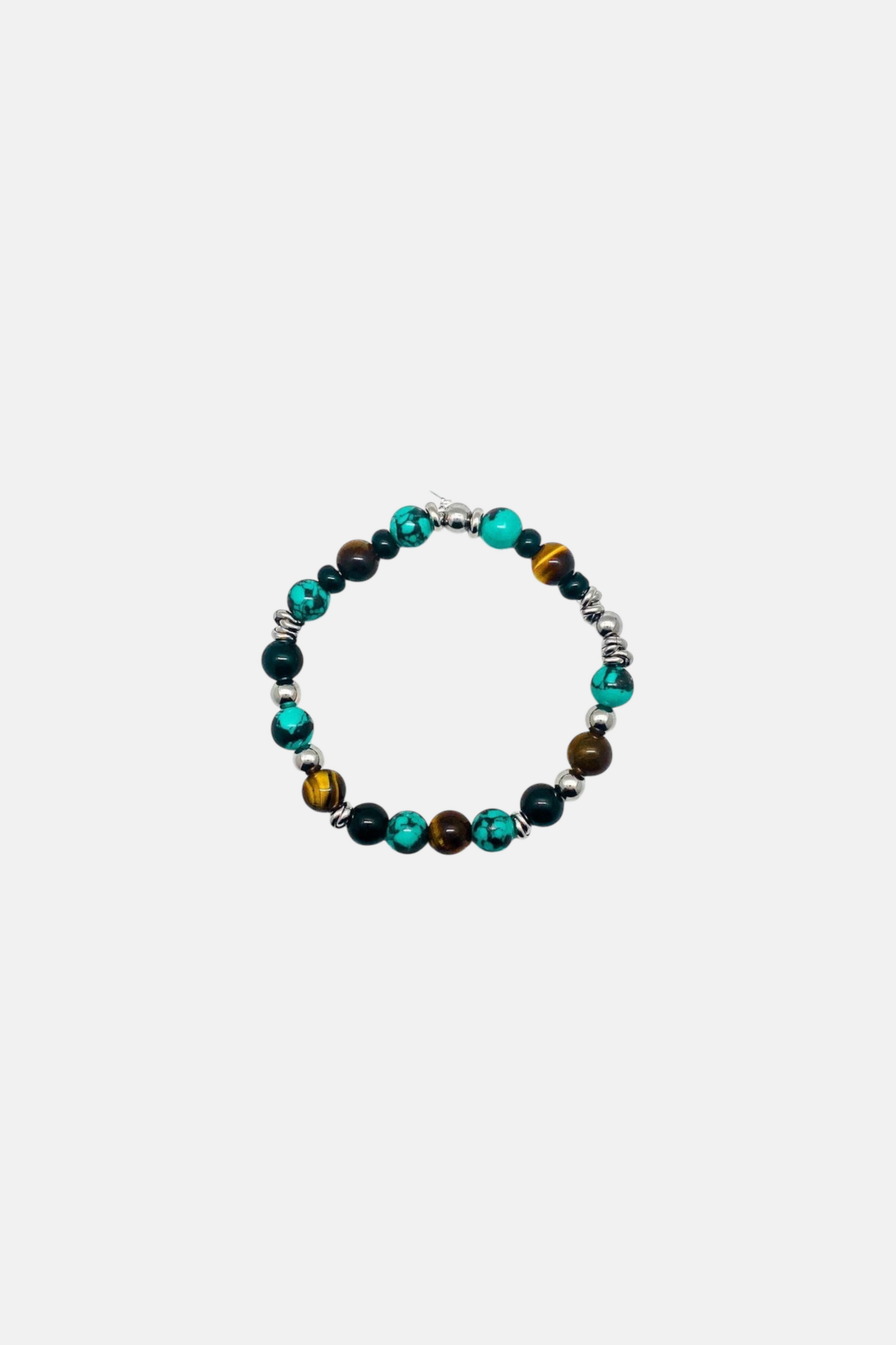 Uno dei best-seller di MOKI si trasforma per completare il look: il bracciale LANZETTI’S CUT, omonimo della sua collana, realizzato a mano con pietre di Pasta di Turchese, Occhio di Tigre, Onice Nera, rondelle di Onice Nera e intermezzi in Acciaio 316L.