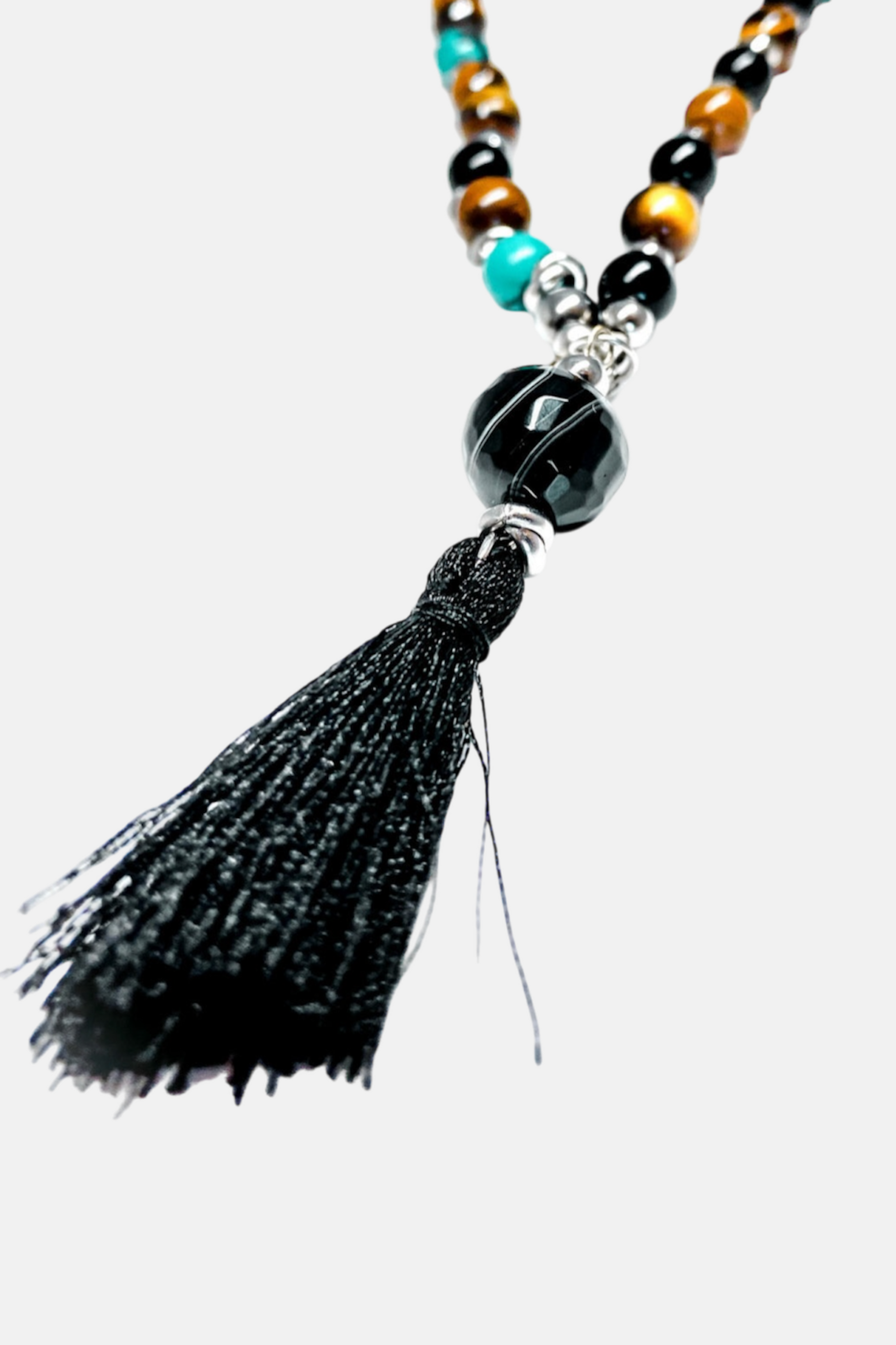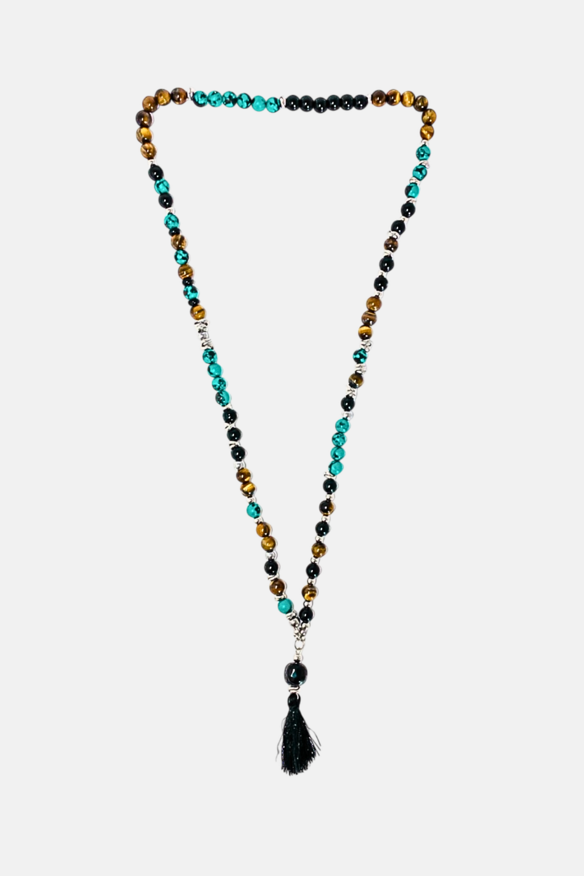 Dalla fusione dei concept di stile, benessere e personalità, la nostra realtà si fonde con l'intramontabile fascino de I Lanzetti: nasce la LANZETT'S CUT, collana in stile Mala Tibetano, disegnata da Jay Ruggiano e realizzata a mano dalla designer Ramona Sicuranza con pietre di Occhio di Tigre, Pasta di Turchese ed Onice Nero intervallata da doppie fasce in Acciaio 316L con terminale in Quarzo Nero e l'intramontabile Nappina, simbolo del Mala.