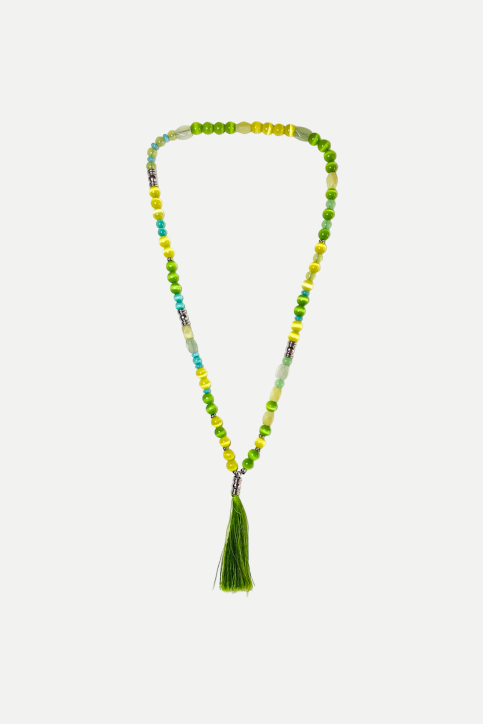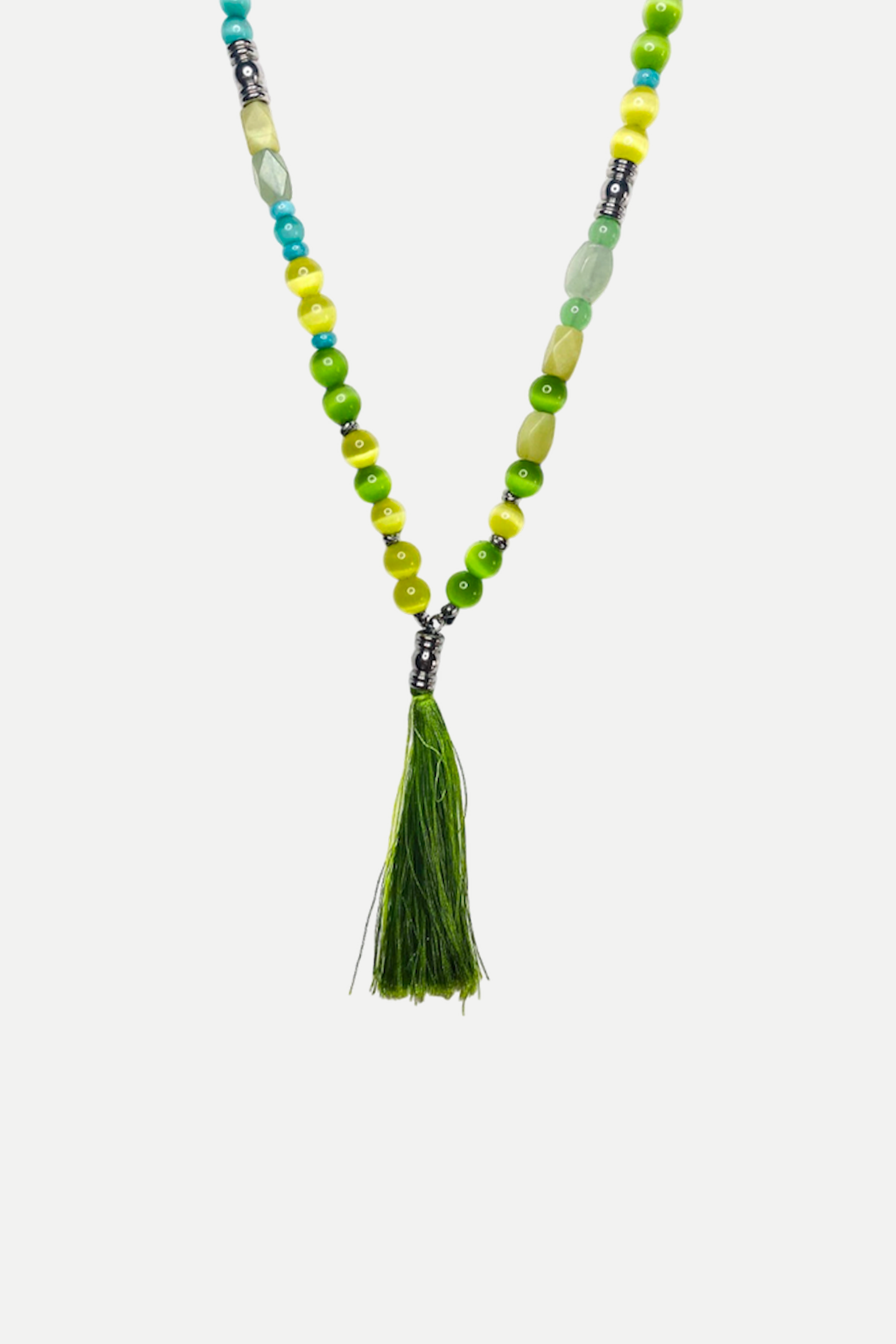 Ispirata ad una filosofia africana che si riferisce ad una maniera di sentire la vita e ad un modo di ragionare molto intensamente, significa letteralmente “umanità attraverso gli altri” o benevolenza verso il prossimo”. É così che è nata la collana UBUNTU, realizzata a mano in stile Mala Tibetano con pietre di Occhio di Gatto Verde, Occhio di Gatto Giallo, Occhio di Gatto Azzurro, Giada rettangolare Verde e Gialla e intermezzi in Acciaio 316L.